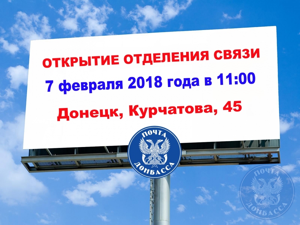 "Почта Донбасса" приглашает всех на торжественное открытие отделения почтовой связи в Куйбышевском районе Донецка!